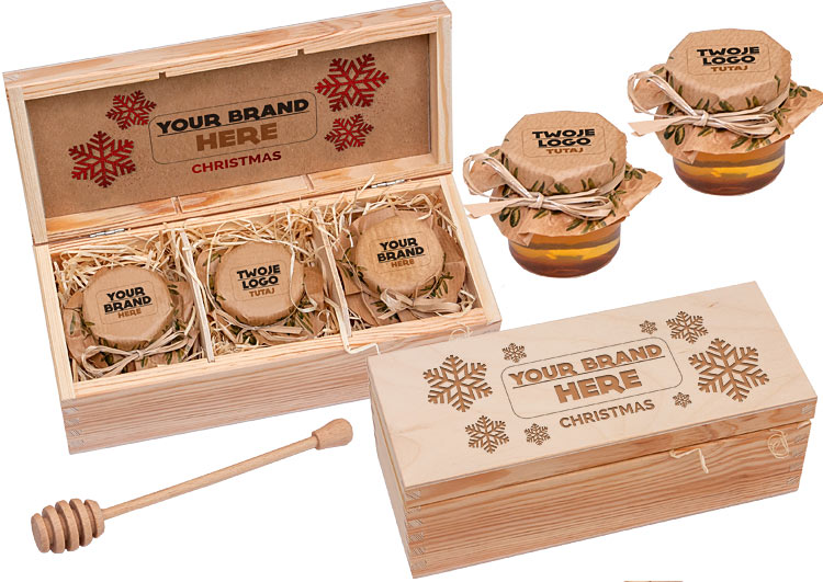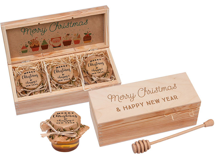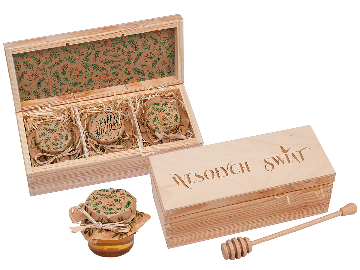 - elegant set of 3 mini jars of fresh, aromatic honey – perfect for cold winter days