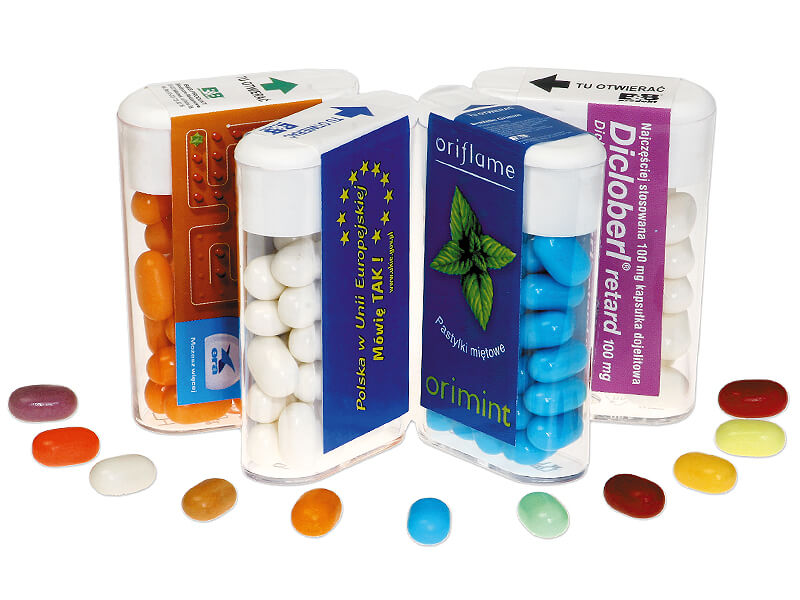 Odświeżające drażetki miętowe lub owocowe o różnych smakach i kolorach.