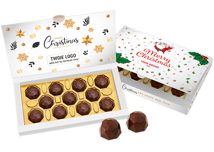 - 11 ręcznie wytwarzanych czekoladek w kształcie diamentów z czekolady belgijskiej mlecznej oraz białej