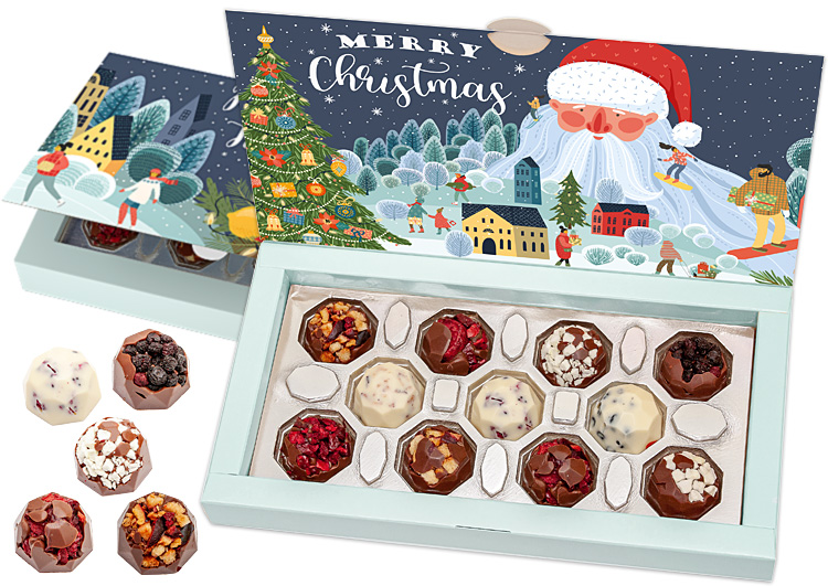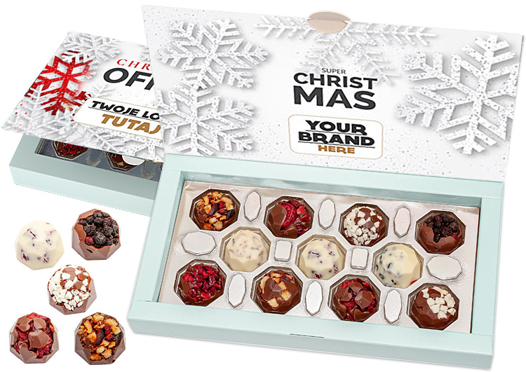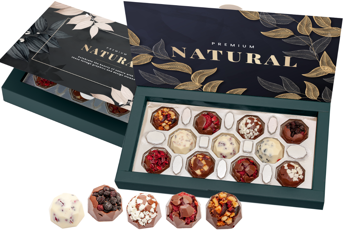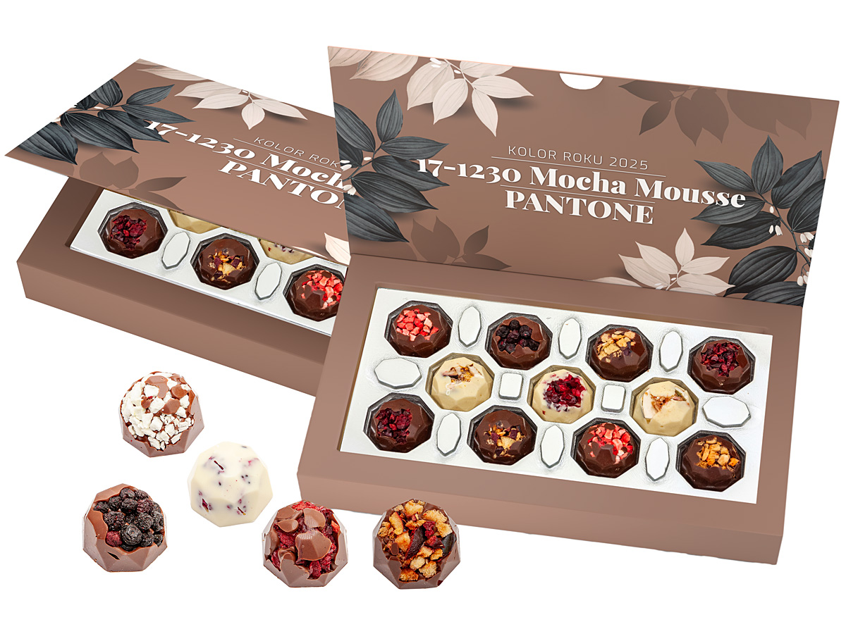 - na wierzchu czekoladek znajdują się owoce liofilizowane