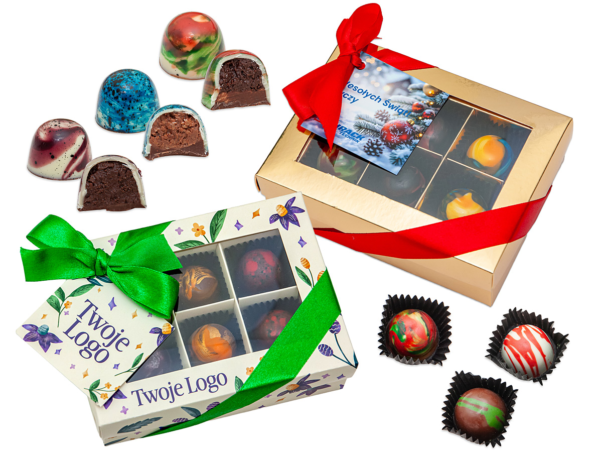 - w standardzie 3 wybrane smaki i dekoracje pralin