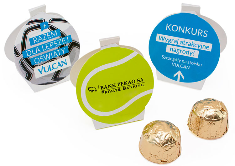 • pakowane w kartonowe pudełeczko w kształcie piłki: