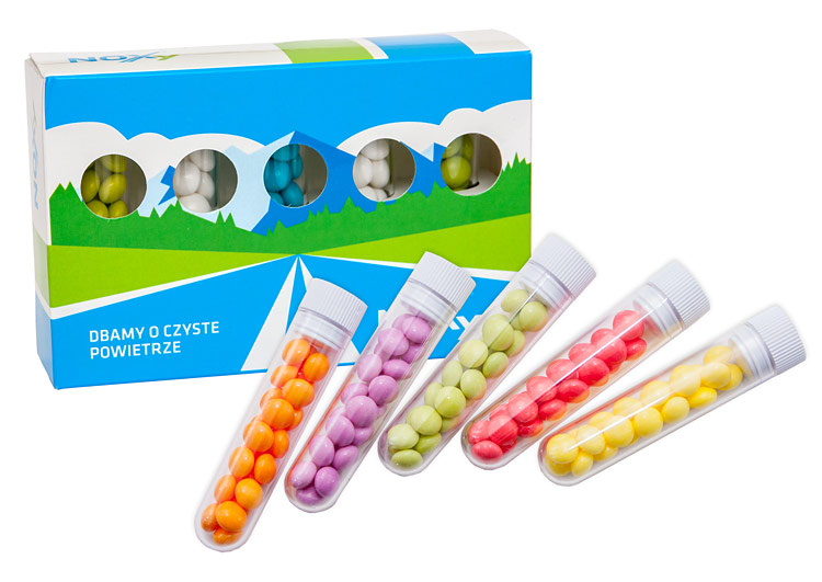 • 5 fiolek w pudełku – możliwość wyboru od 1 do 5 smaków drażetek