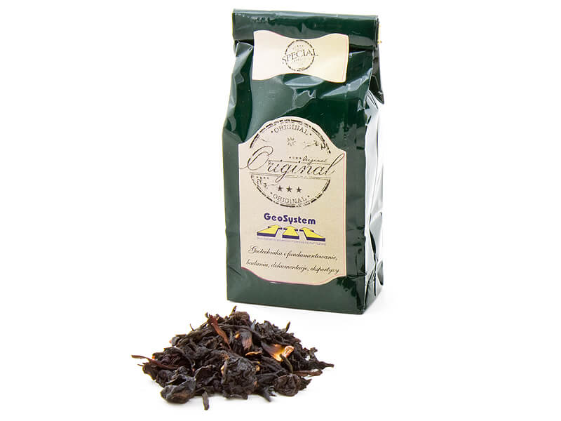 - pakowana w przezroczyste torebki o pojemności ok. 30 – 40g (w zależności od herbaty)