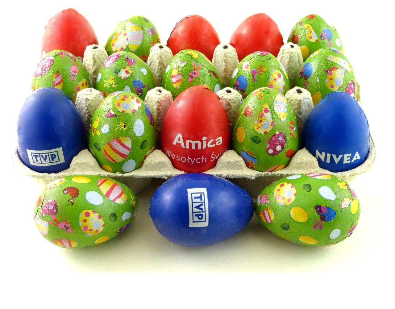 - możliwość zawinięcia jajek w folię z nadrukiem Zamawiającego do 4 kolorów Pantone (bez przejść tonalnych
