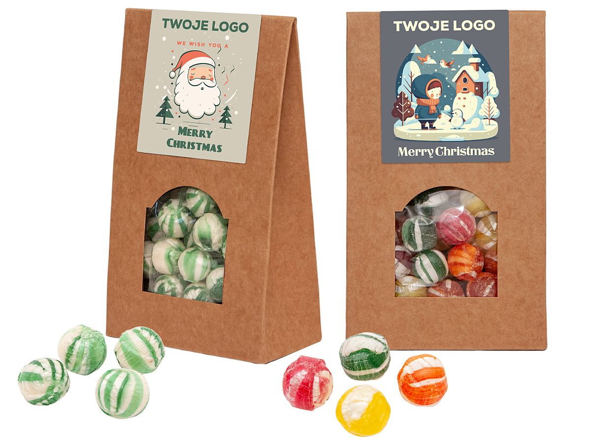 • dostępne smaki: mix owocowych (kolorowe cukierki) lub miętowe (zielono-białe cukierki)