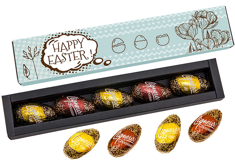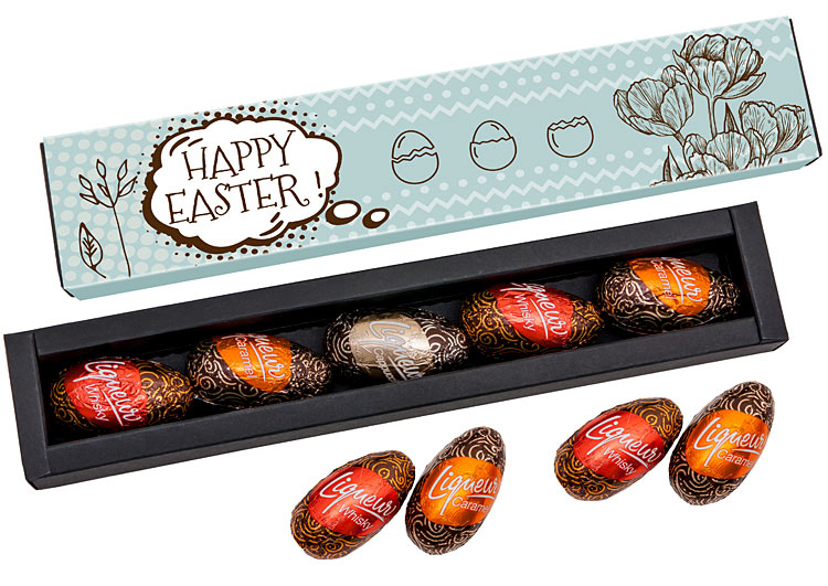 • wykwintny zestaw z alkoholizowanymi czekoladowymi jajeczkami