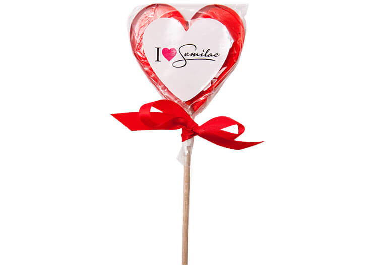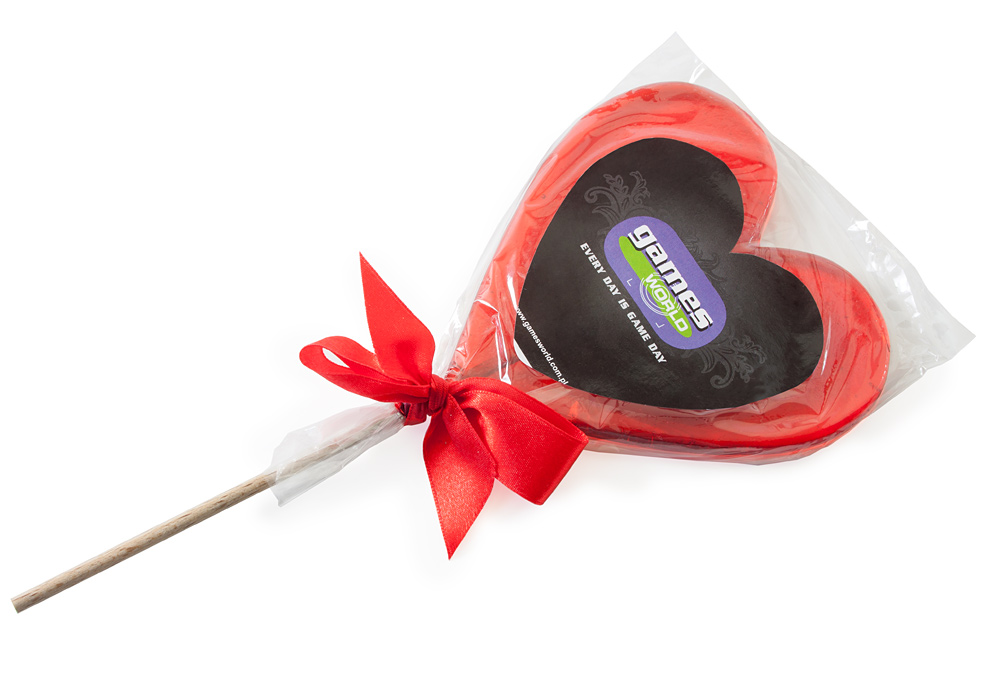 • pakowane w przezroczystą folię z samoprzylepną etykietą reklamową w kształcie serca
