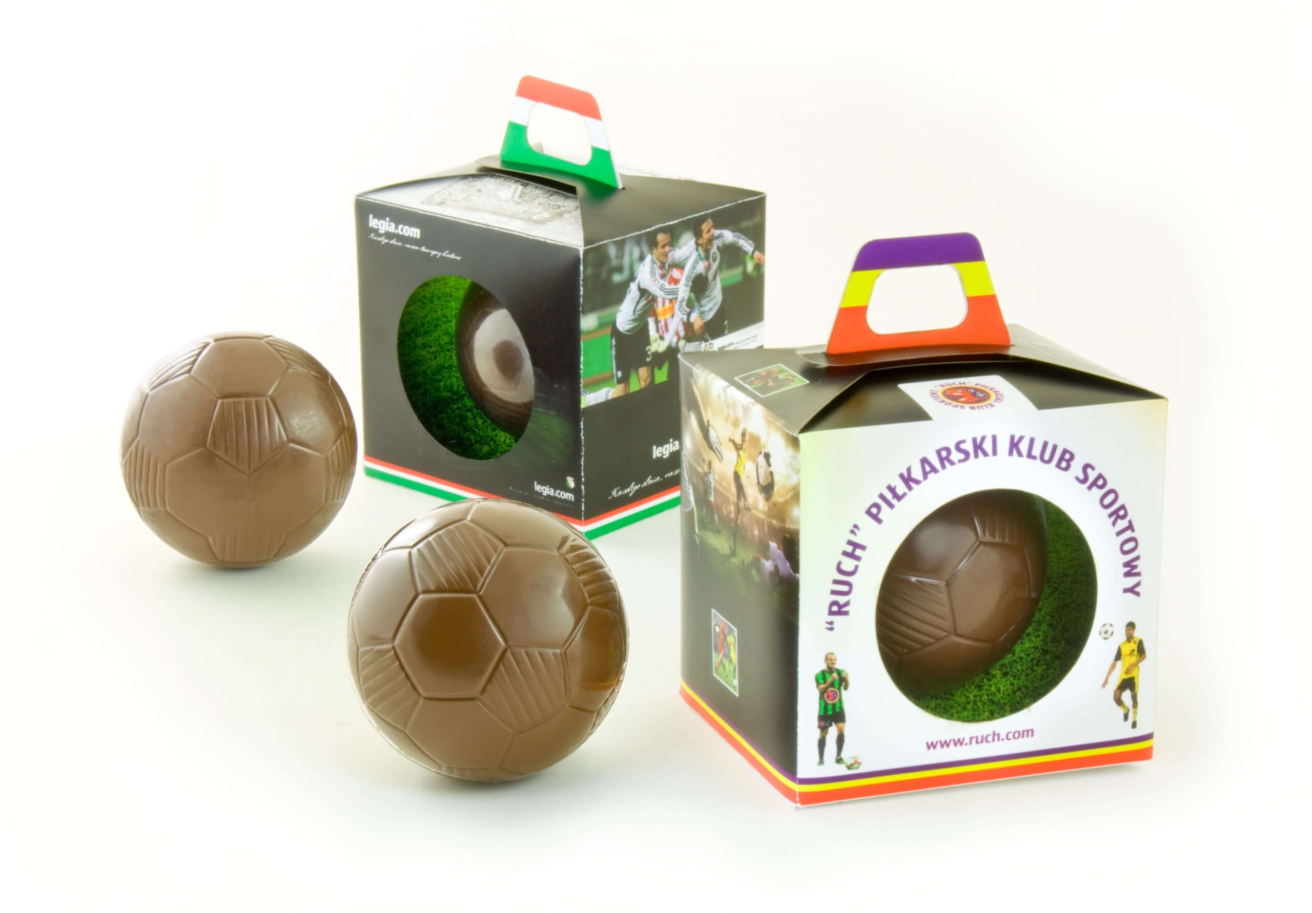 • efektowna piłka nożna o średnicy 60 mm wykonana z wysokiej jakości czekolady belgijskiej o grubych ściankach