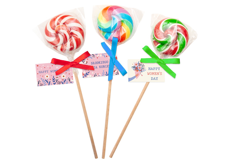 • zakręcony lizak owocowy o średnicy 50 mm