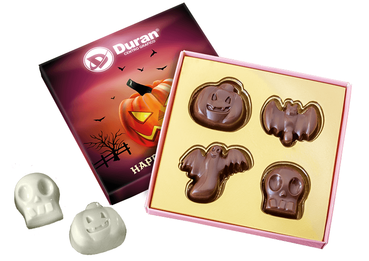 • zestaw 4 czekoladek w kształtach nawiązujących do Halloween