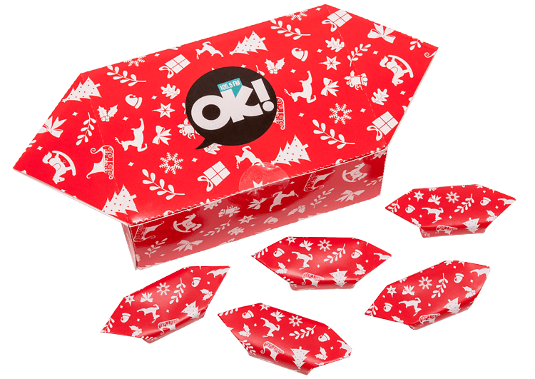 • cukierki zawinięte w etykiety z dowolnym nadrukiem reklamowym CMYK