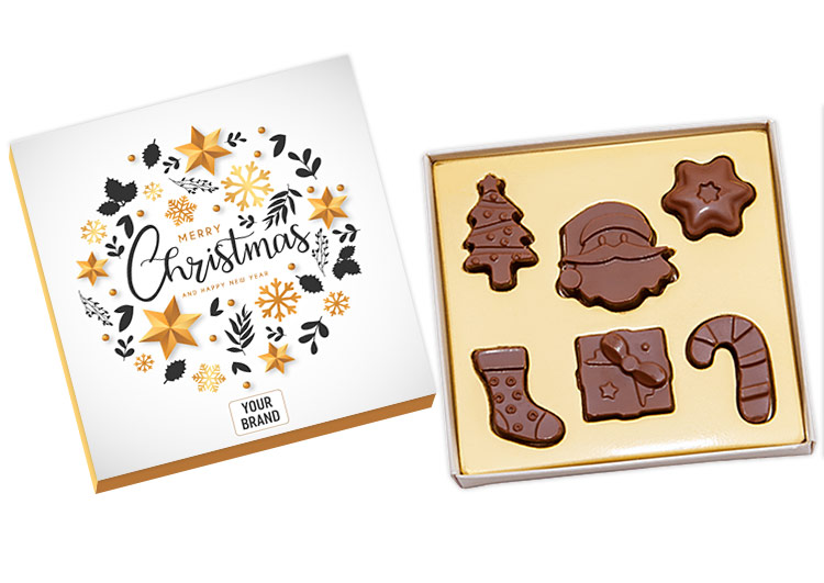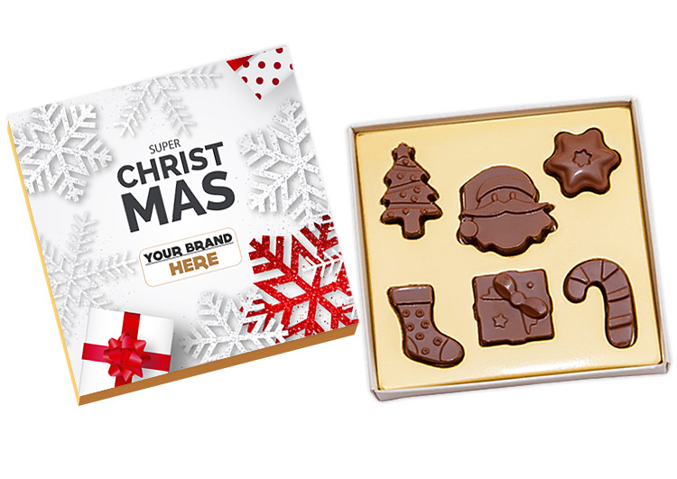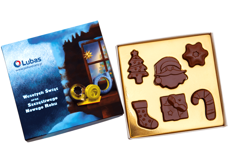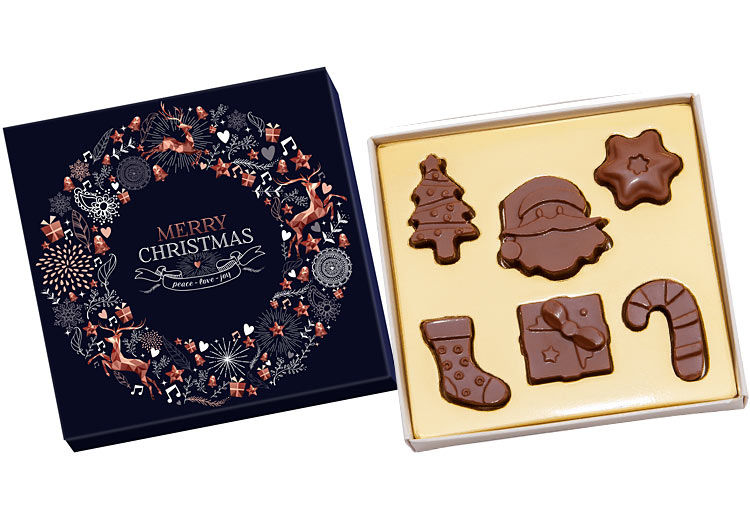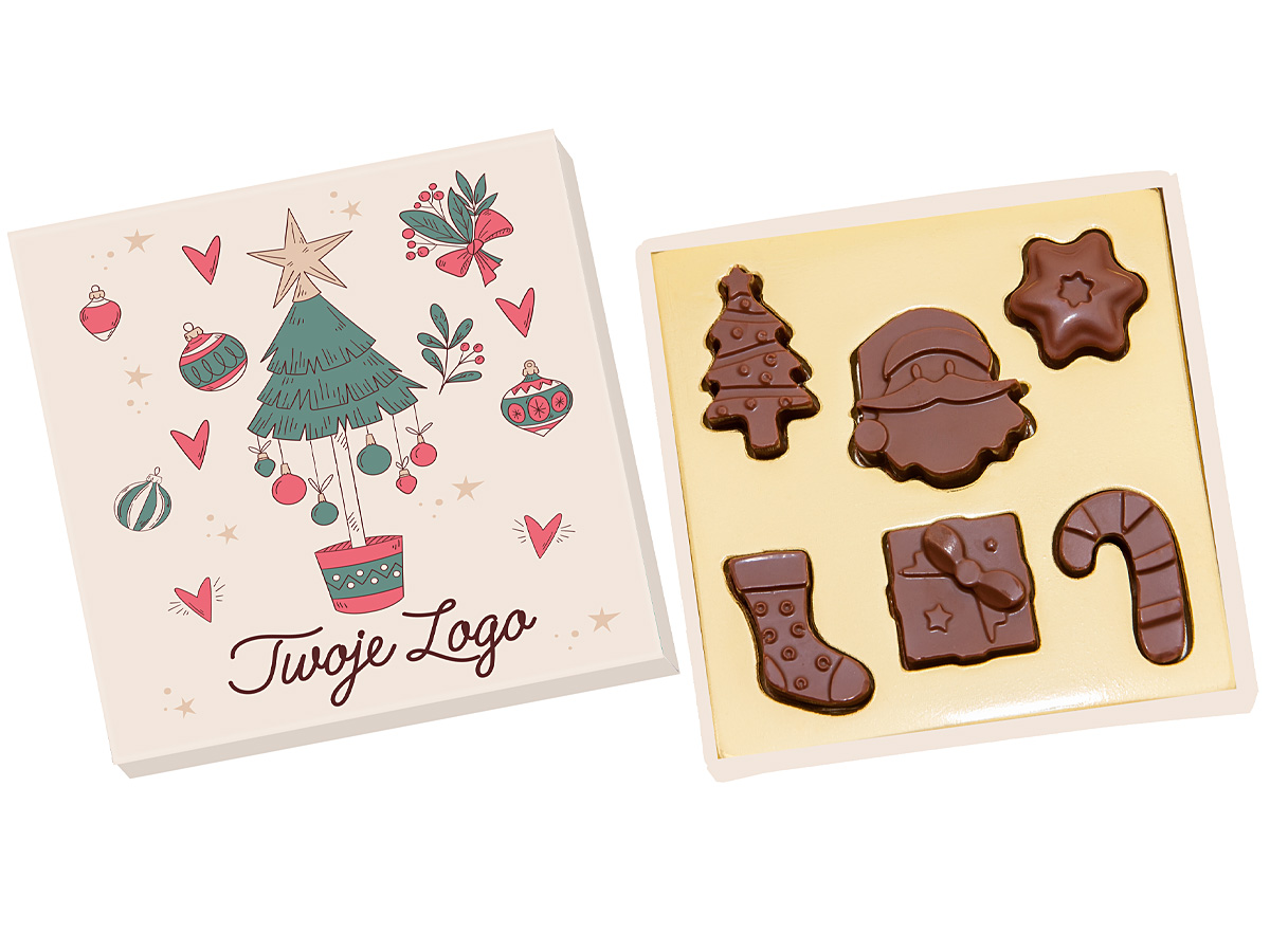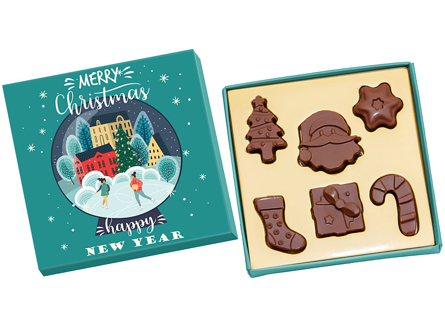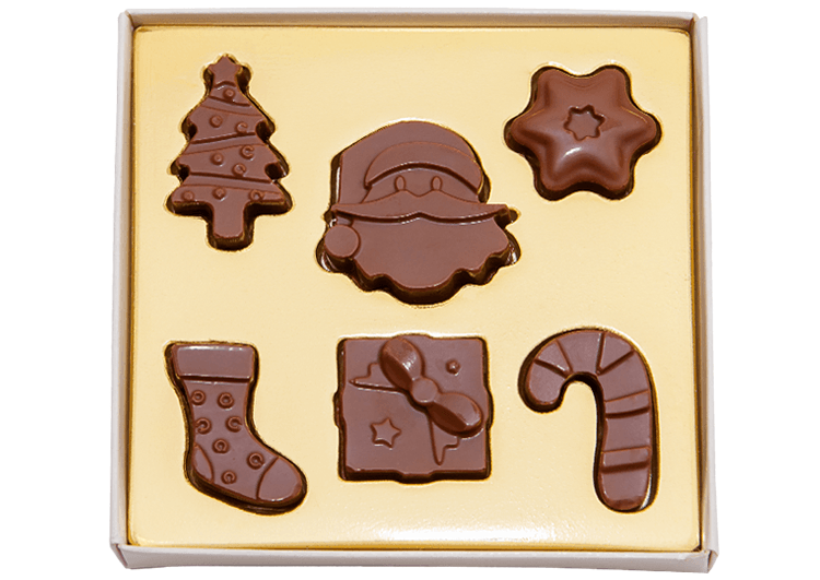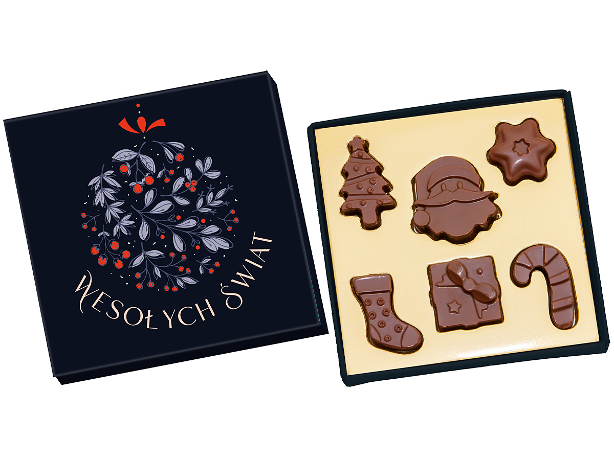 • zestaw mikołajkowy z 6 czekoladkami w kształcie: