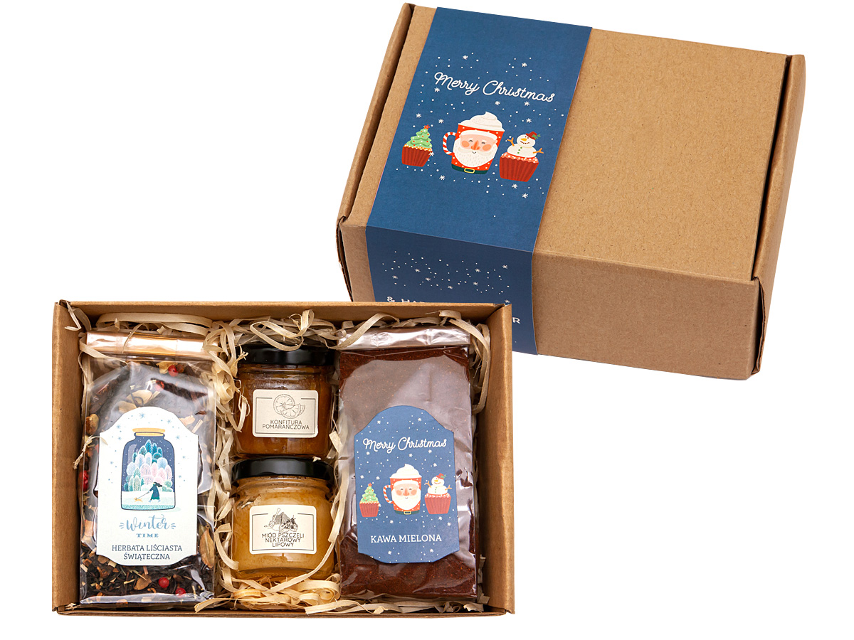 • całość starannie ułożona w brązowym pudełku fasonowym, wypełnionym naturalną wełną drzewną