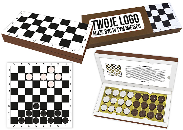 • opakowanie kartonowe z nadrukowaną planszą do gry w warcaby