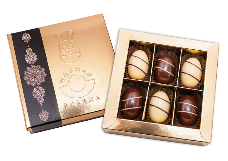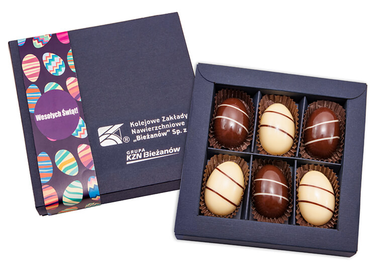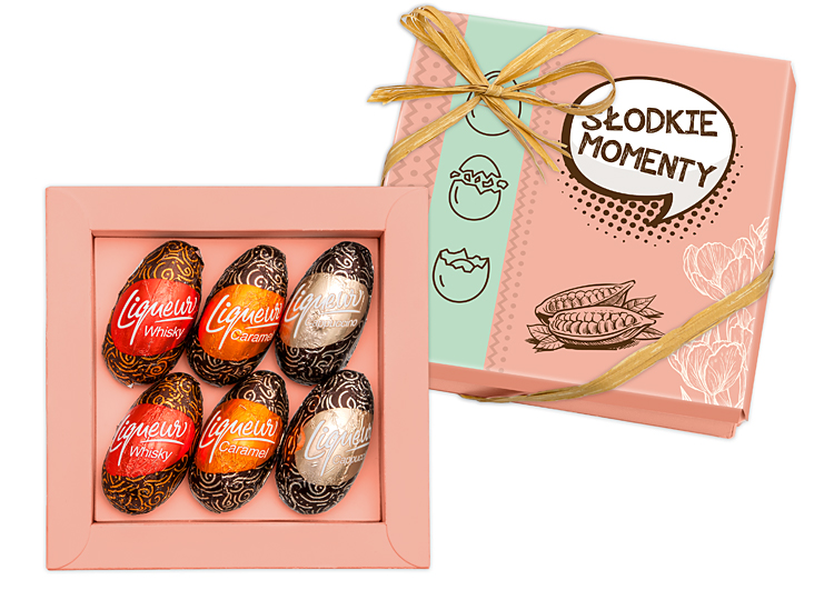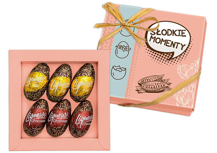 • Elegancki zestaw z wyśmienitymi czekoladowymi jajeczkami